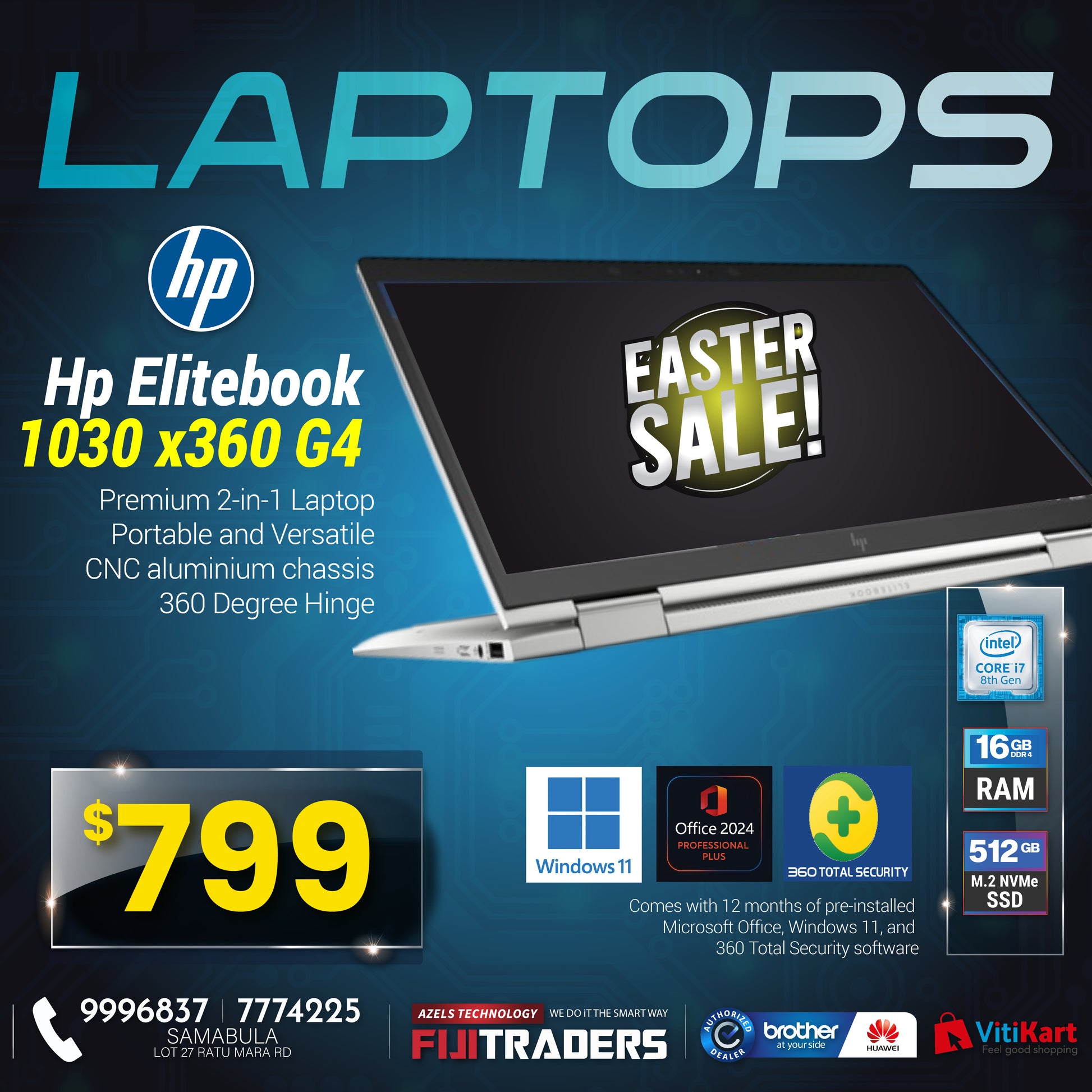 HP ELITEBOOK 1030 x360 G3 (Touch) | i5-8250U| 8GB RAM| 256GB SSD (Ex-leased)